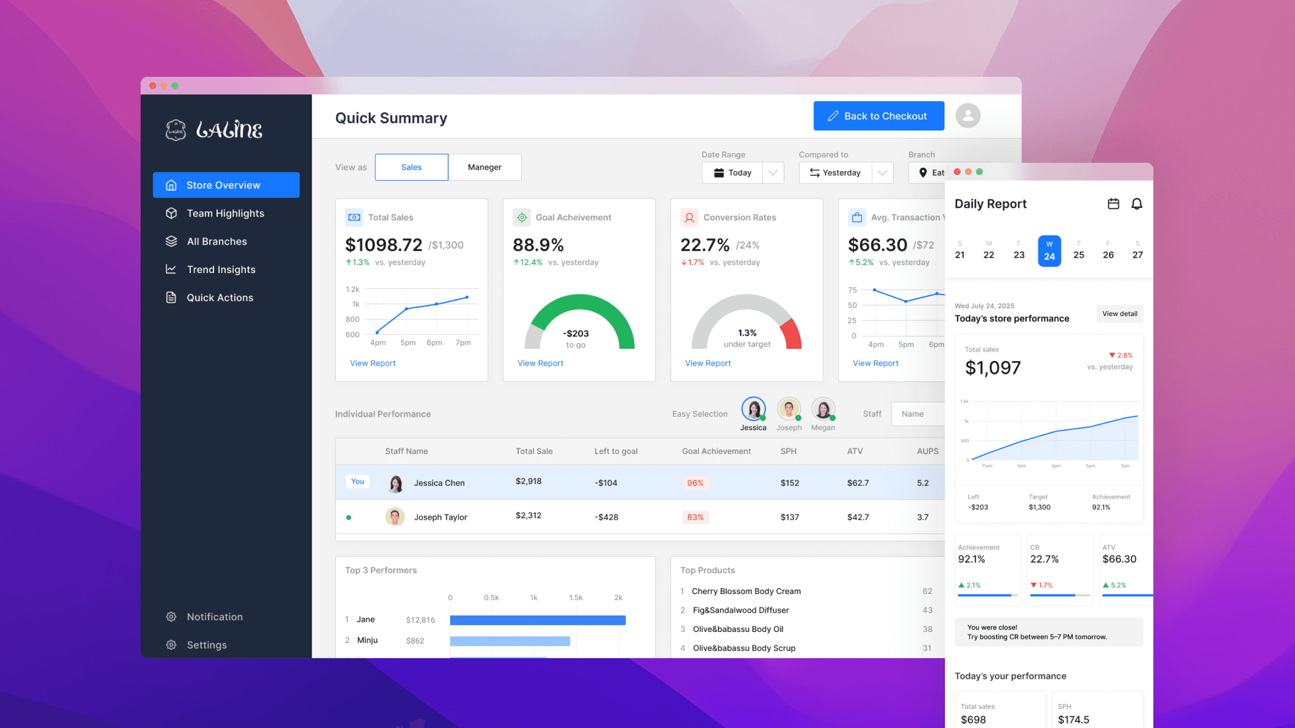 Dashboard for frontline sales teams @Laline